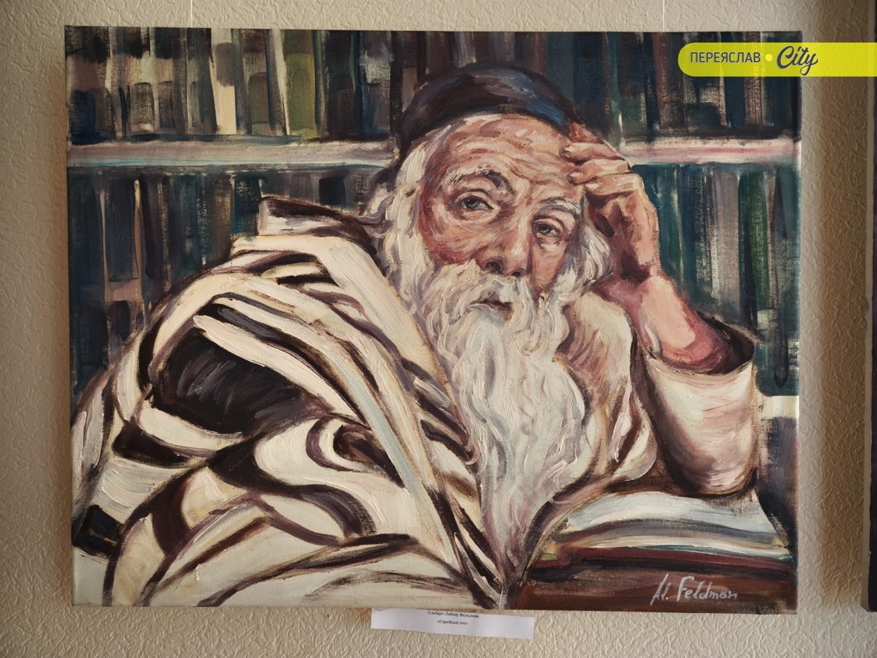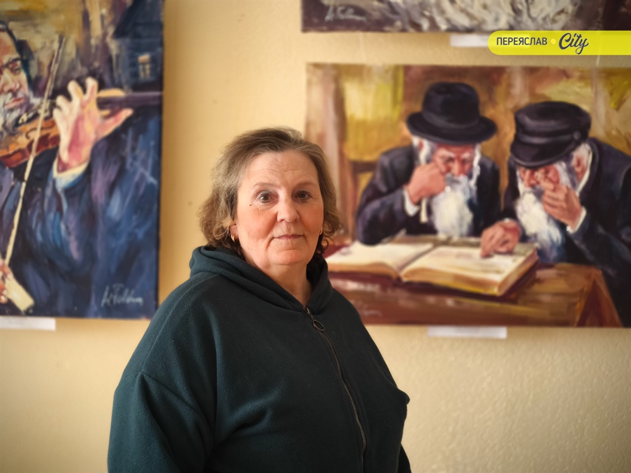 – Нинішня виставка експонувалася і закордоном під назвою "Постаті і ремесла", – зазначає галеристка. – Адже тут є і музиканти, і равини, які читатють тору, є людина, яка переглядає газету. І закордонні відвідувачі примітили, що на картинах зображені євреї Шолома-Алейхема. Ось подивіться: тут одні очі – дуже виразні єврейські очі,– які поглинають століття. Їхня духовність, культура єврейська – все відображається в цих поглядах.