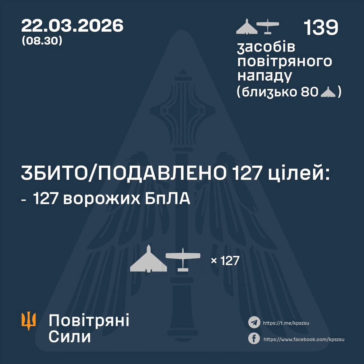 Збито\подавлено 127 ворожих БпЛА