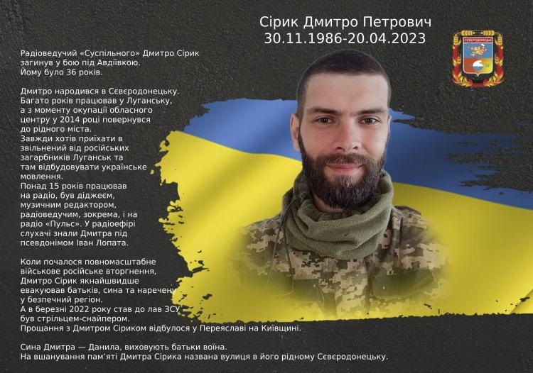 На вшанування пам’яті Дмитра Сірика названа вулиця в його рідному Сєвєродонецьку.