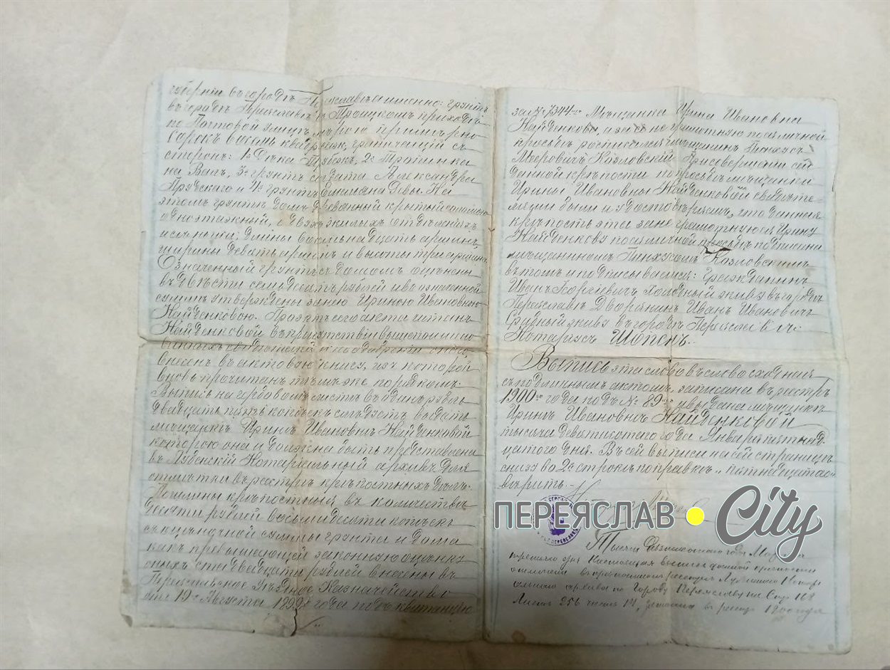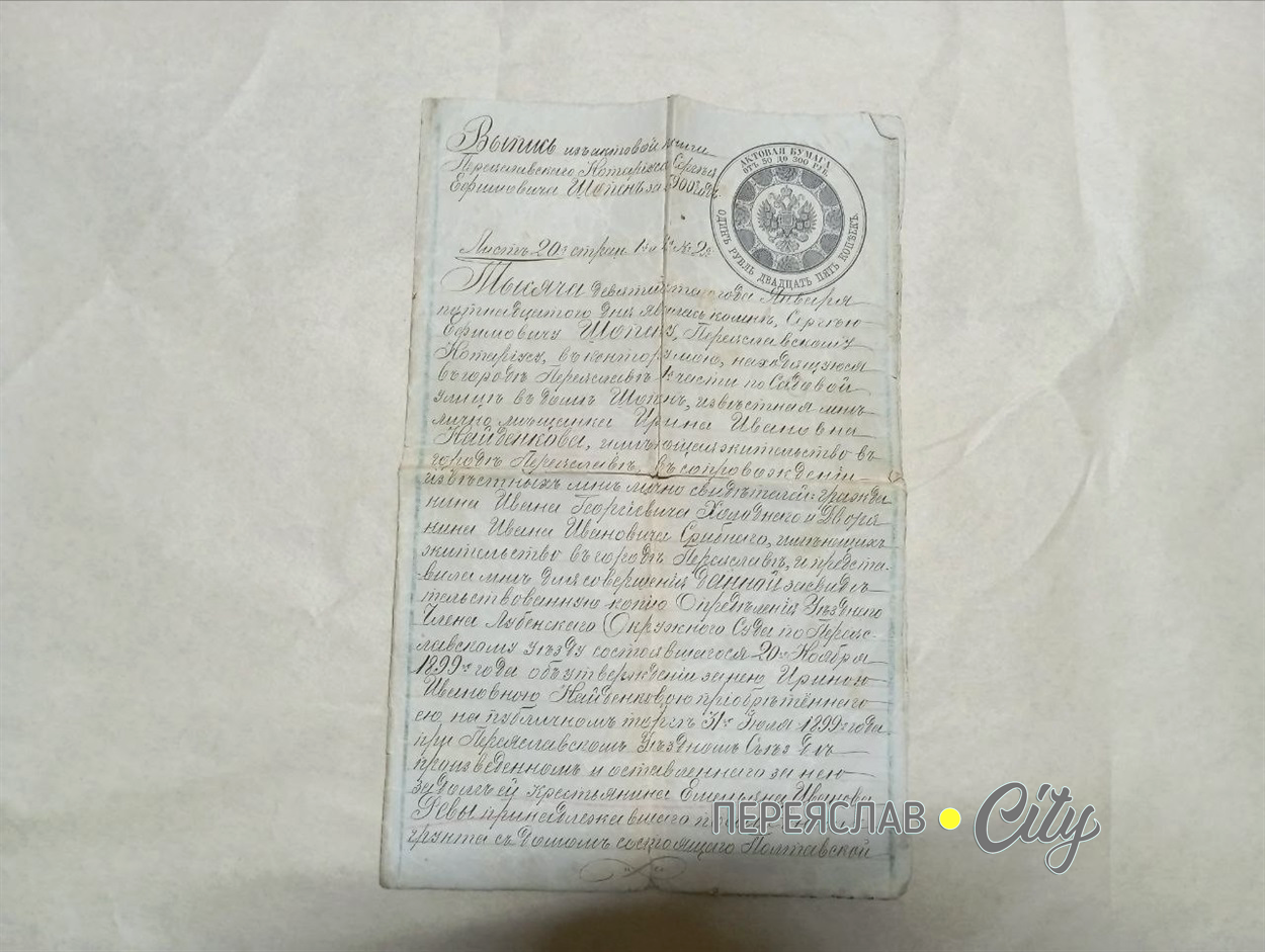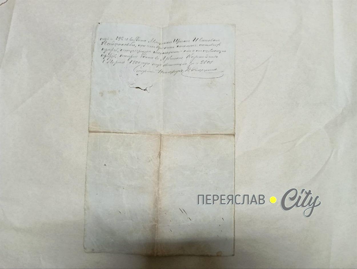 Документ передала заповіднику її праправнучка переяславка Ірина Жукова. Її дівоче прізвище Найденко – вже скорочений варіант прізвища прапрабабусі по батьковій лінії. Цей документ збергівся у родині і потрапив до пані Ірини як спадок, який вона вирішила передати науковцям. До речі, саме на тій землі потім уже нащадки збудували новий будинок і живуть там досі, розповідає Переяслав.City.