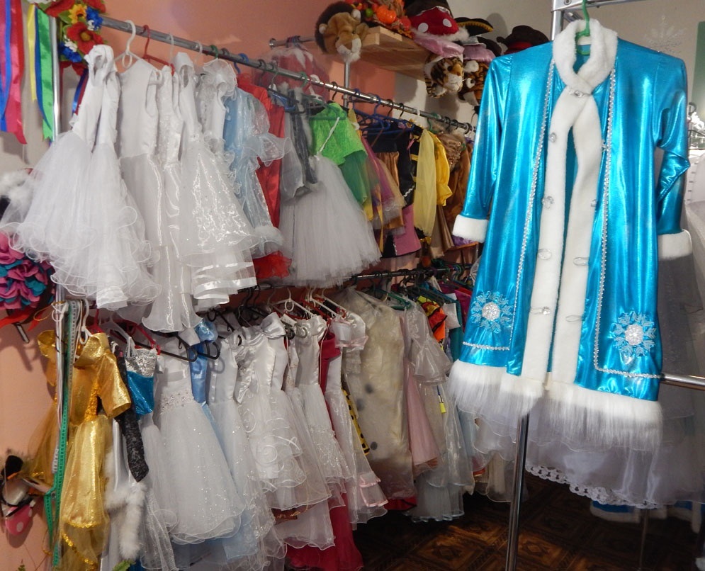 Понад 300 костюмів напрокат для новорічних ранків, фотосесій, тематичних вечірок для дітей віком від 1 до 16 років. Для маленьких принцес тут пропонується великий вибір святкових суконь, а для дорослих – костюми Діда Мороза, Снігуроньки, баби-Яги, Кощія Безсмертного та клоунів. Якщо необхідного костюму тут немає в наявності, його можна замовити. Однак зауважте, що вбрання тут не викупляється.