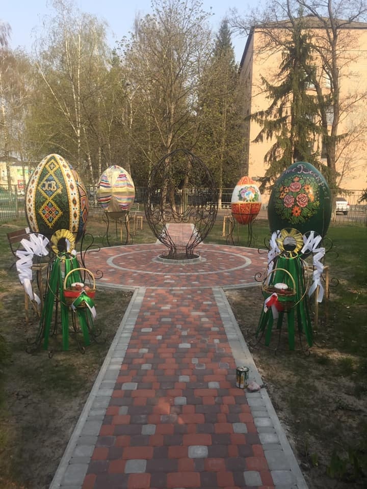 Напередодні Великодня подвір’я Свято-Єфремівського храму, що розміщений на території ЦРЛ, причепурили тематичними інсталяціями. Півтораметрові писанки та янголи із кошиками, в яких муляжі крашанок та інші пасхальні наїдки, було встановлено на вимощених бруківкою майданчиках обабіч стежки.