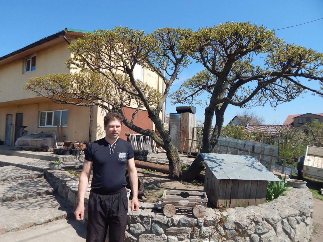 – Це дворище ми придбали з Іриною понад десять років тому, коли тут ще нікого не було із сусідів, – каже його господар. – Та й ми не відразу почали жити у цьому тоді безлюдному місці. А як тільки оселилися, посадили плодові деревця. А дещо згодом, відколи я навчився правильно доглядати за садом, захопився вирощуванням ще й мініатюрних дерев – бонсай. Таке садове мистецтво дуже поширене в Японії. А ось на Переяславщині, і не знаю, чи є ще хтось, хто б формував дерева в мініатюрі. Я ж перед тим, як зайнятися цим, прочитав чимало літератури. Основний принцип, яким керуються майстри бонсай – "В малому вбачати велике". Сам термін бонсай перекладається ще й як "дерево у чаші" або вирощування дерев на підносі чи в неглибокому горщику.