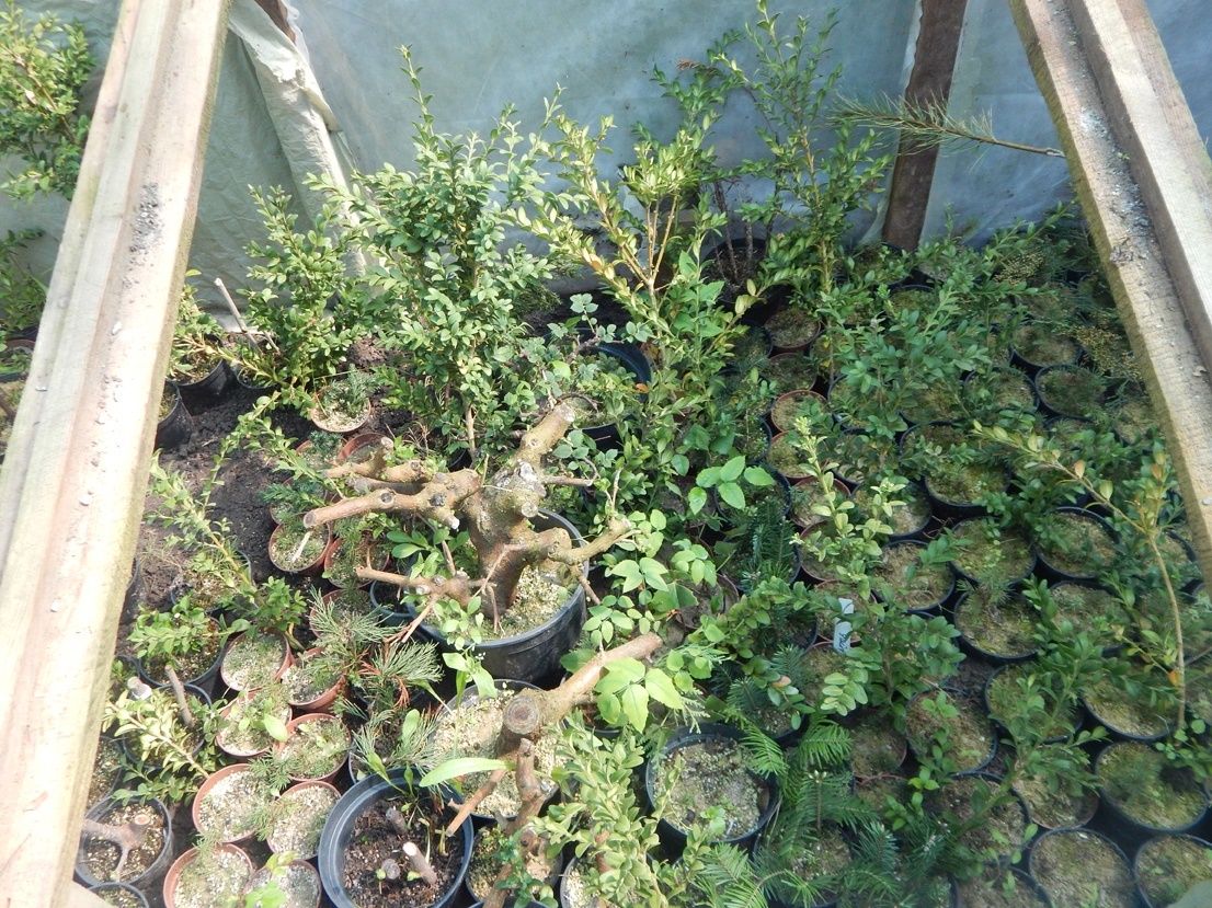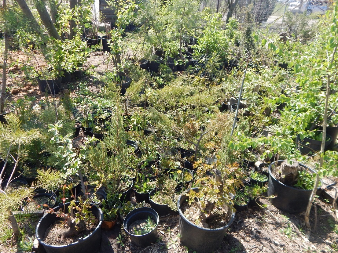 На подвір’ї Кузьменків є чимало міні-дерев. Вони ростуть у невеличких глечиках, вазах, відрах, ящиках. "Заготовки" для майбутніх карликових дерев Віктор зазвичай шукає у лісі.