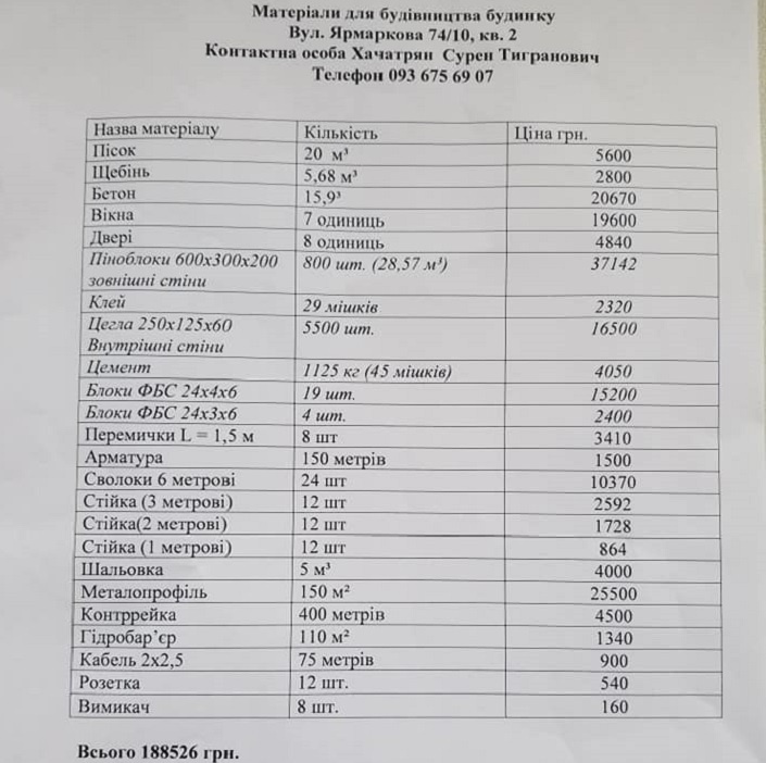 Працівники відділу капітального будівництва міської ради обстежили місце пожежі і порахували кількість необхідних матеріалів для відбудови помешкання та їхню вартість. За попередніми підрахунками, загальна вартість складає 188526 гривень.