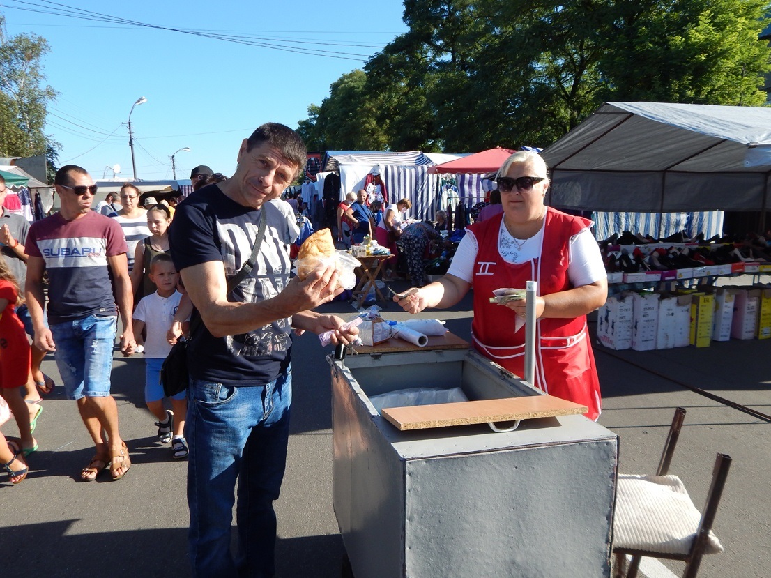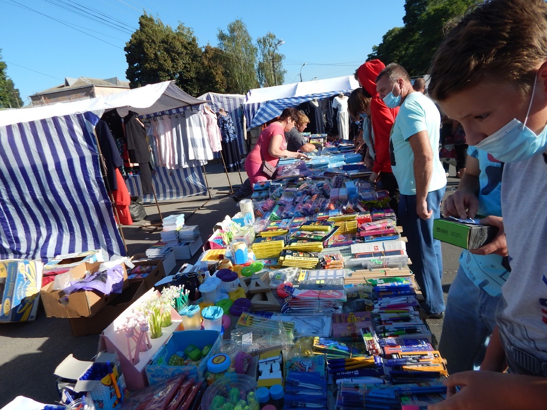 Минулої неділі на традиційних торгах було дуже людно. (Цього сонячного й спекотного дня максимальна температура досягала 31 градуса). За два дні до нового навчального року найактивніше торгувалося продавцям шкільного приладдя та дитячого одягу. Ранці для школярів в залежності від якості та дизайну коштували від 550 до 1500 грн. Чимало дівчат та жінок юрмилося біля намету, що був розташований на Шкільній неподалік ТЦ "Підсінний", із турецьким порівняно недорогим одягом та взуттям. Приміром, легеньку жіночу куртку там можна було придбати за якихось 150 грн, халат – за 100 грн, а кросівки на дівчат-підлітків – за 50 грн.