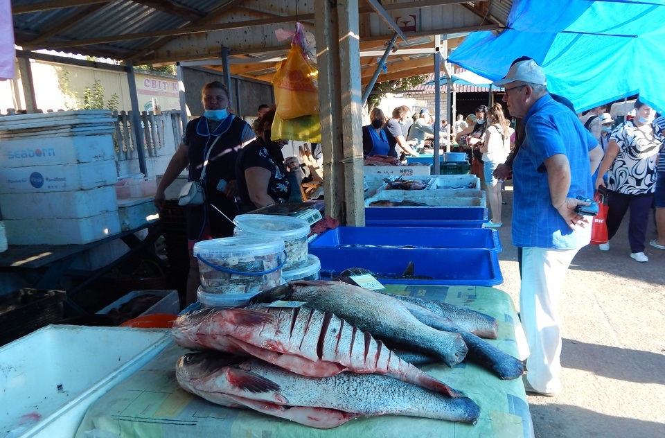 Вибір річкової риби був немалий. Карасів продавали по 25-35 грн/кг, лящів – по 25-40, плітку – по 25-30, товстолобів – по 45, коропів – по 40-50, сомів – по 70, а судаків – по 50-100. За кіло копченого балика із товстолоба правили 200 грн, тушки судака – 120, а окуня чи плітки – 100 грн. Гарно купували й ляща (100 грн/кг) та скумбрію (95 грн/кг), солені в домашніх умовах. Пропонували тут до продажу й рибні консерви домашнього виробництва. За півлітрову баночку із судаком в томаті чи олії треба було віддати 50 грн.